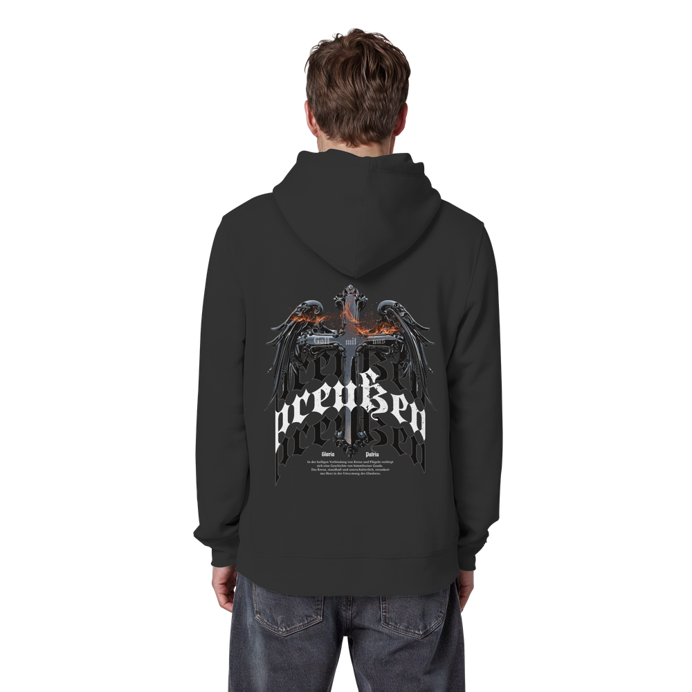 Zeige deine Verbundenheit zur preußischen Geschichte mit diesem stilvollen Organic Basic Hoodie im modernen Design. Das charakteristische schwarze Preußenkreuz macht diesen Kapuzenpullover zum perfekten Statement-Piece für Geschichtsinteressierte und Sammler.