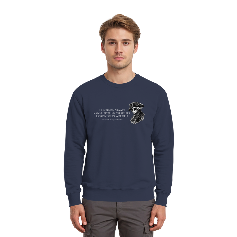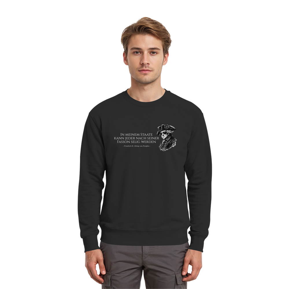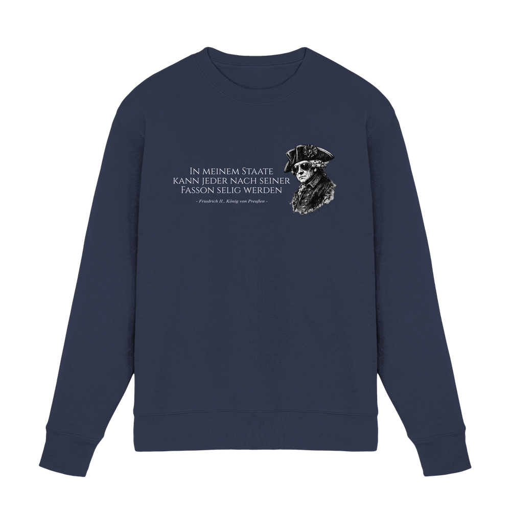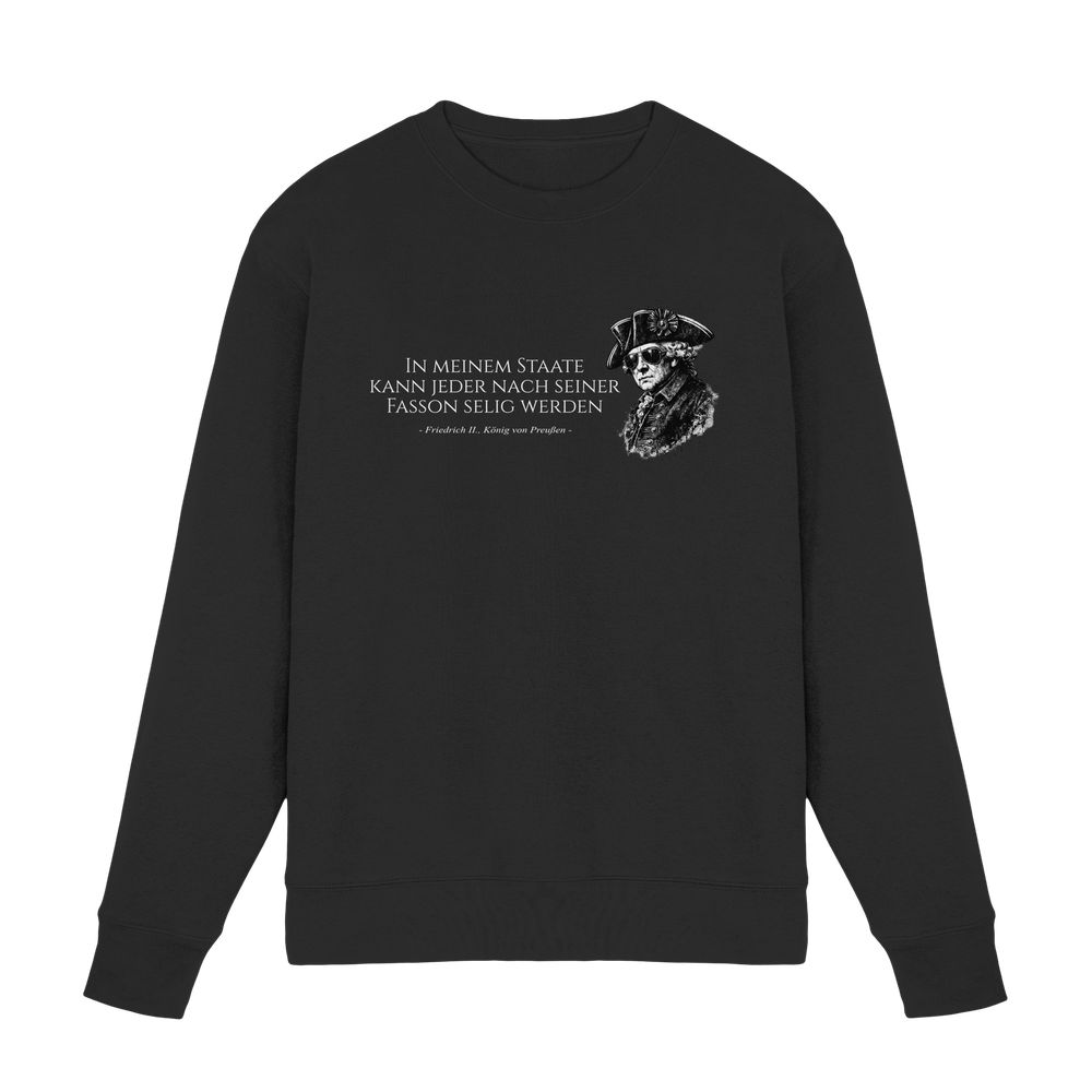 Würdigen Sie das Erbe des größten preußischen Monarchen mit diesem exklusiven Friedrich der Große Sweatshirt. Als Kenner preußischer Geschichte schätzen Sie die präzise Gestaltung dieses Premium-Kleidungsstücks, das den legendären König von Preußen (1712-1786) ehrenvoll repräsentiert.