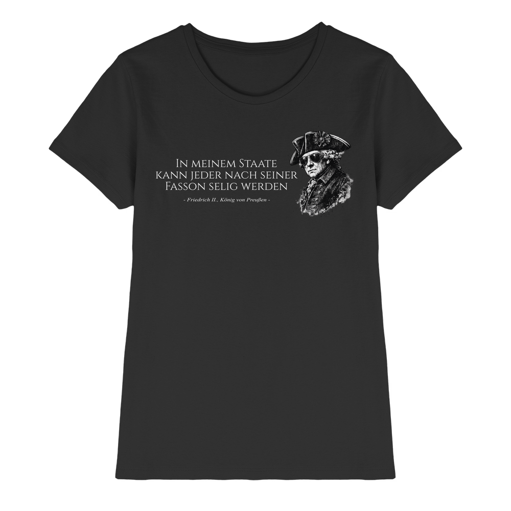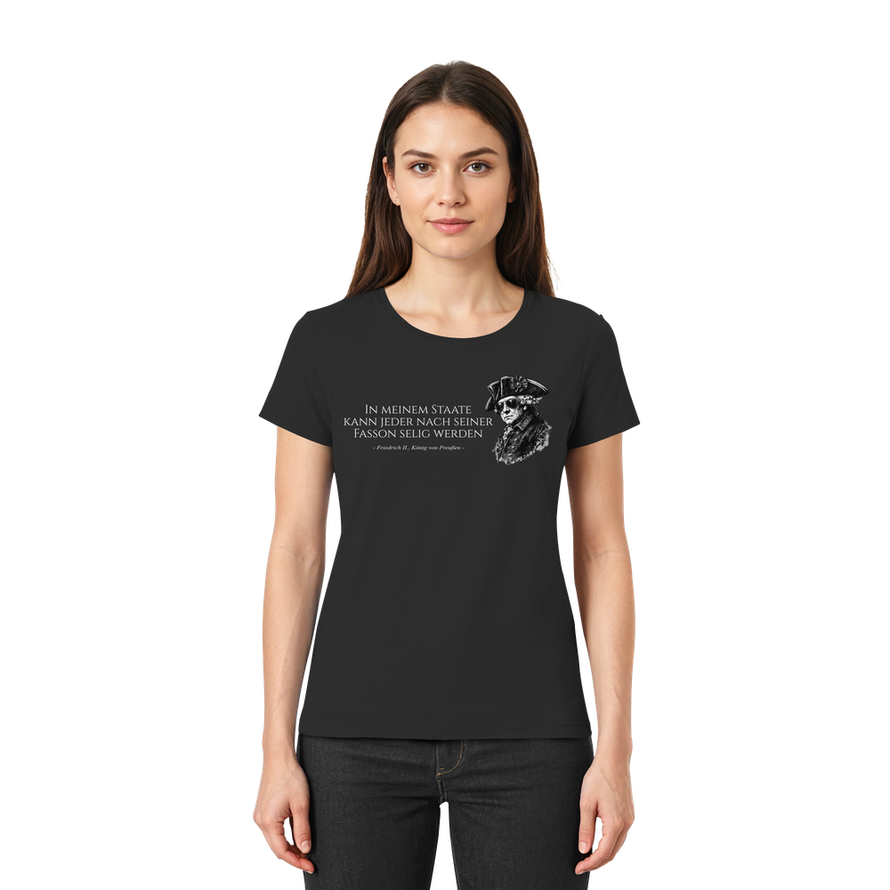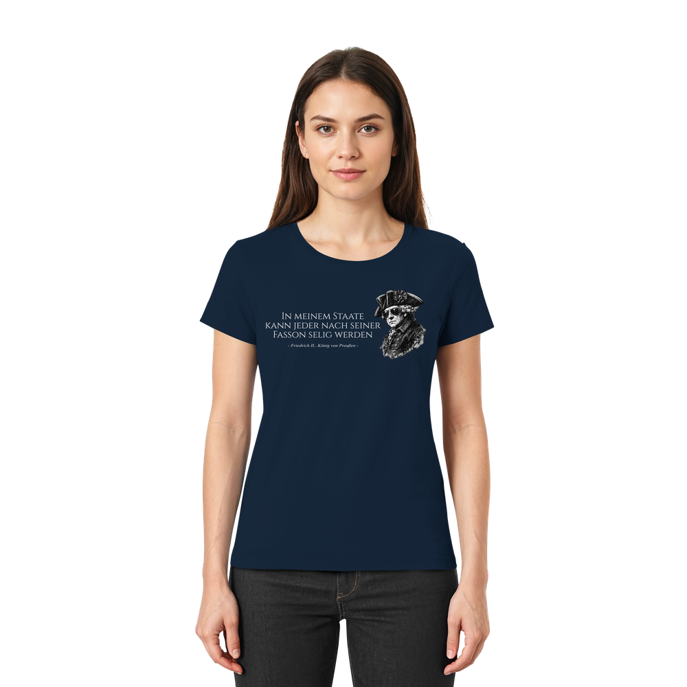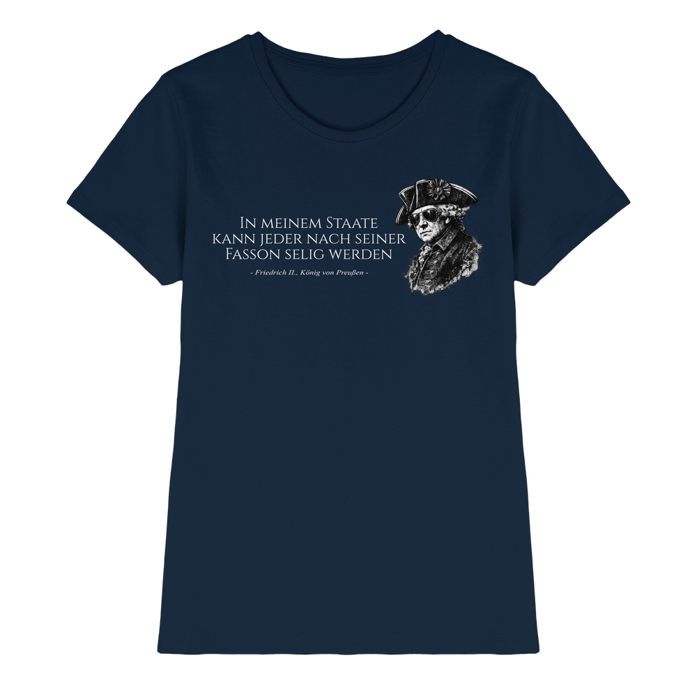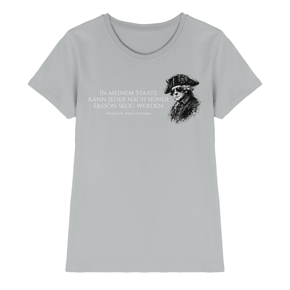 Würdigen Sie den bedeutendsten Preußenkönig mit diesem exklusiven Friedrich der Große T-Shirt für Damen. Das Premium-Shirt vereint historische Ehrfurcht mit modernem Tragekomfort und ist ein unverzichtbares Stück für Liebhaber preußischer Geschichte.
